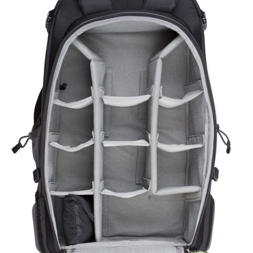 - Adjustable dividers for large telephoto lenses, traditional photo gear, or personal items